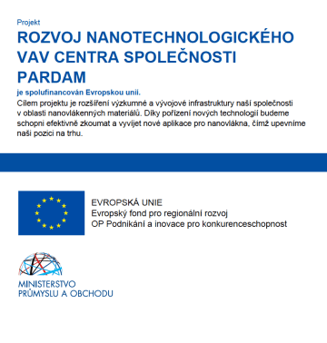 The project DEVELOPMENT OF THE NANOTECHNOLOGY R&D CENTER OF PARDAM under registration number CZ.01.1.02/0.0/0.0/17_165/0015987 was supported by the Ministry of Industry and Trade as part of the Operational Programme Enterprise and Innovation for Competitiveness (OP PIK).